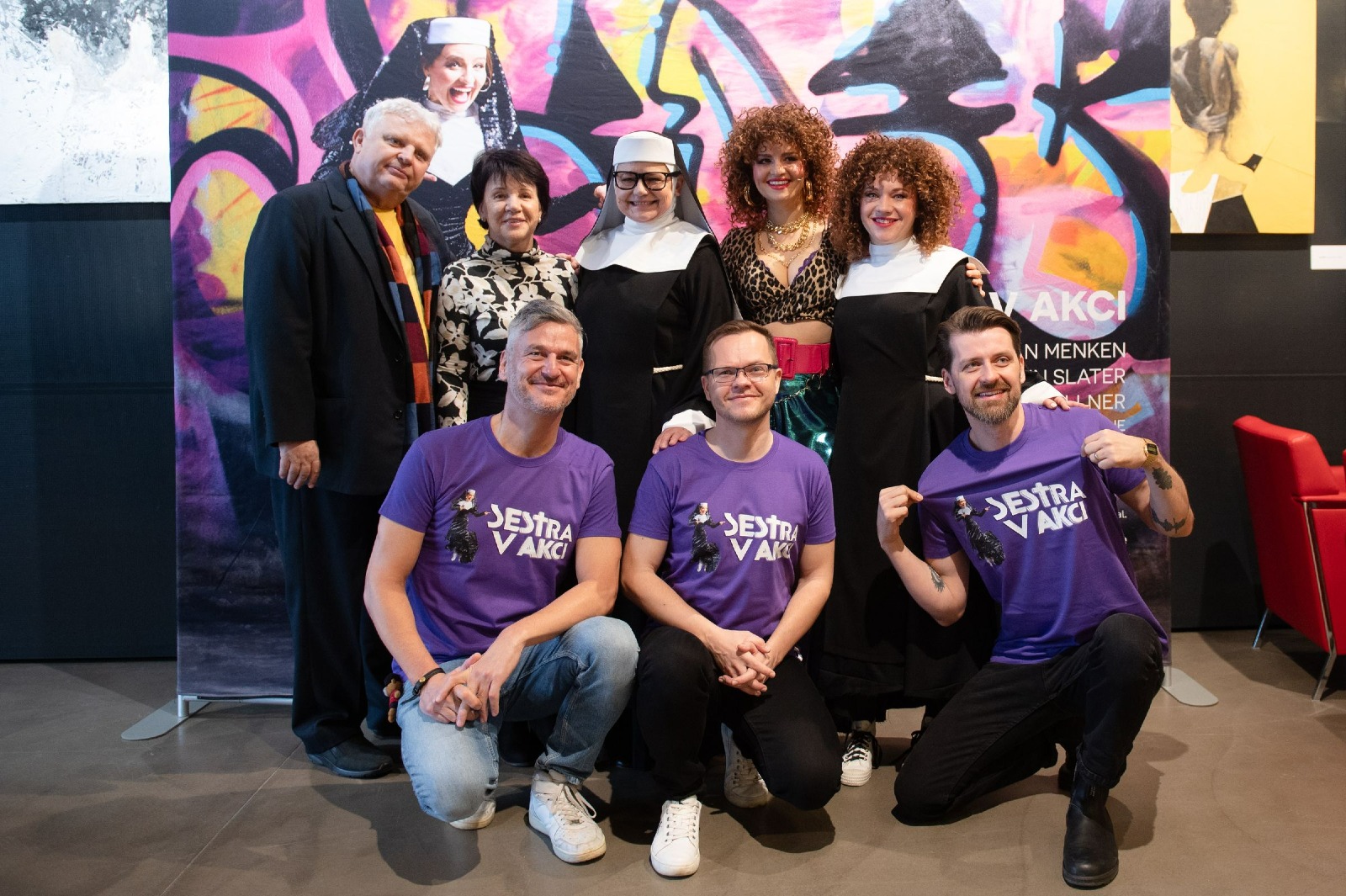 Sestra v akci sleduje příběh ženy, která v nečekaném prostředí nachází nejen útočiště, ale i nové poslání – její energie vdechne nový život klášternímu sboru a promění jej v překvapivé lákadlo širokého okolí. „Sestra v akci je sice energií nabitou komedií, zároveň ale nabízí silný a dojemný příběh o vzájemné podpoře a odvaze. Přeji si, aby naše inscenace divákům připomněla, jak mocná může být síla přátelství a lásky,“ říká režisér Lumír Olšovský. Titulní roli temperamentní zpěvačky Deloris Van Cartier, která převrátí poklidný život v klášteře vzhůru nohama, alternují Charlotte Režná a Eva Staškovičová.