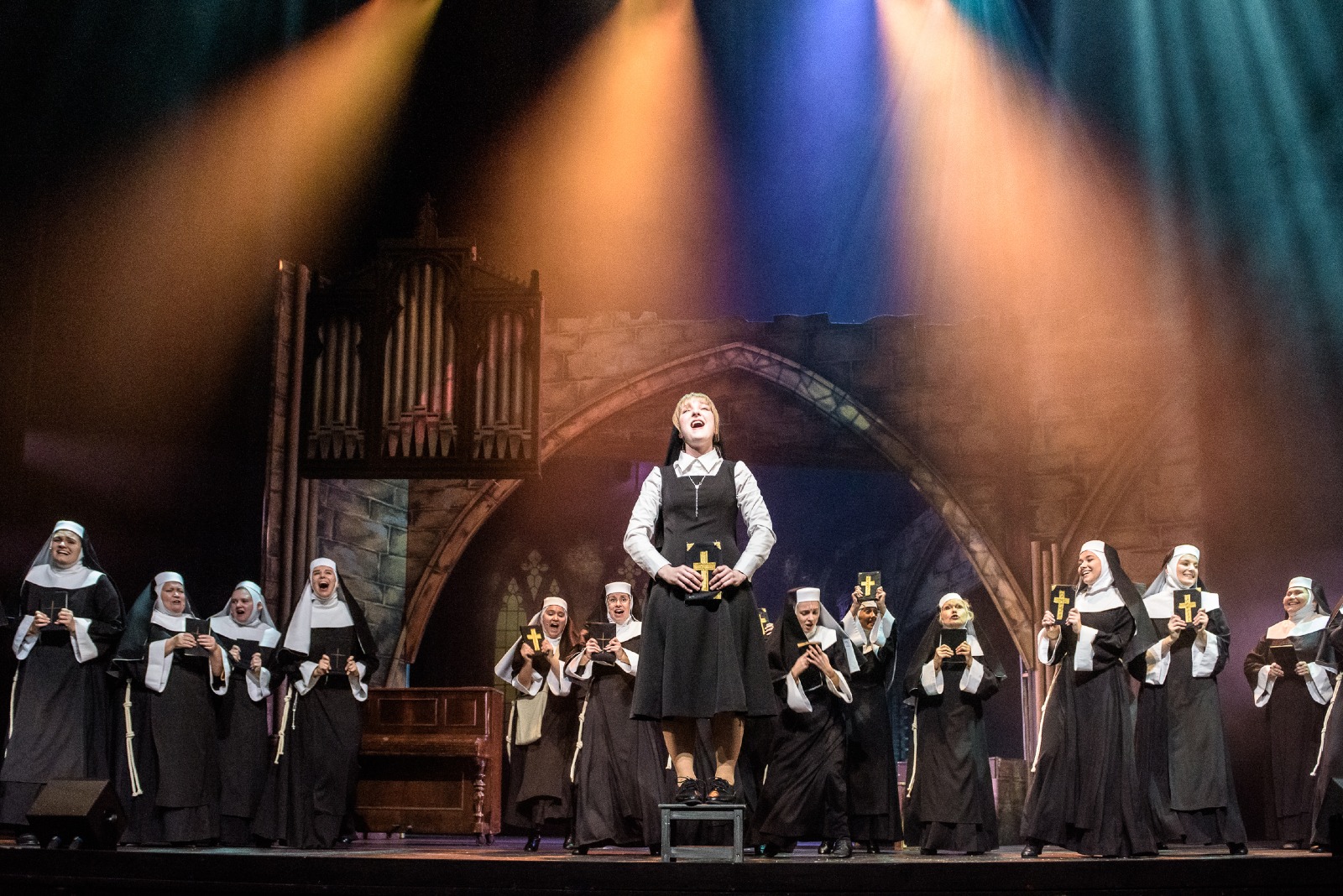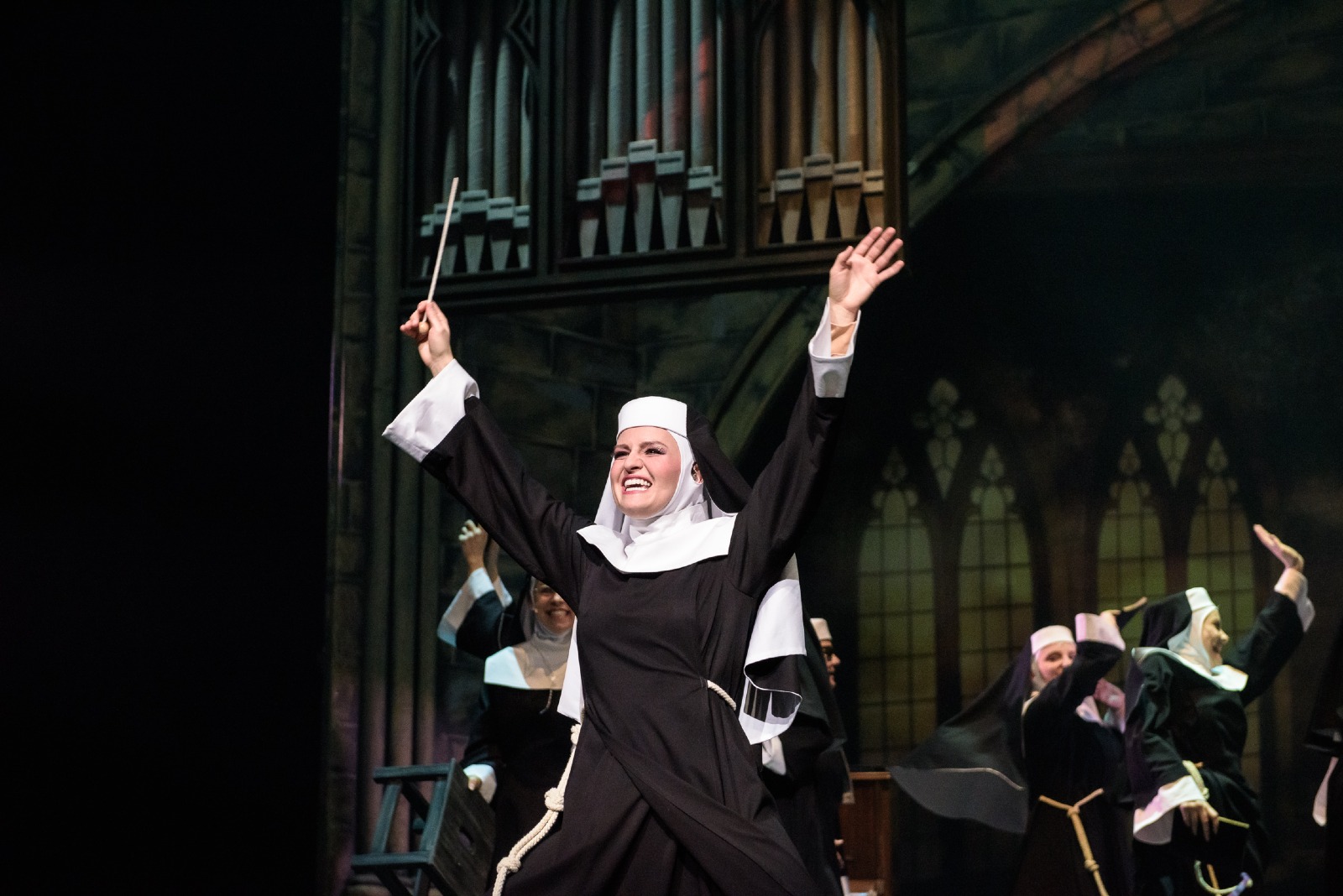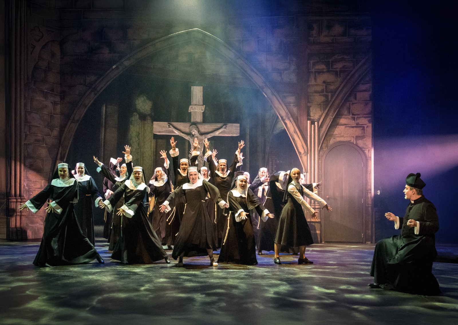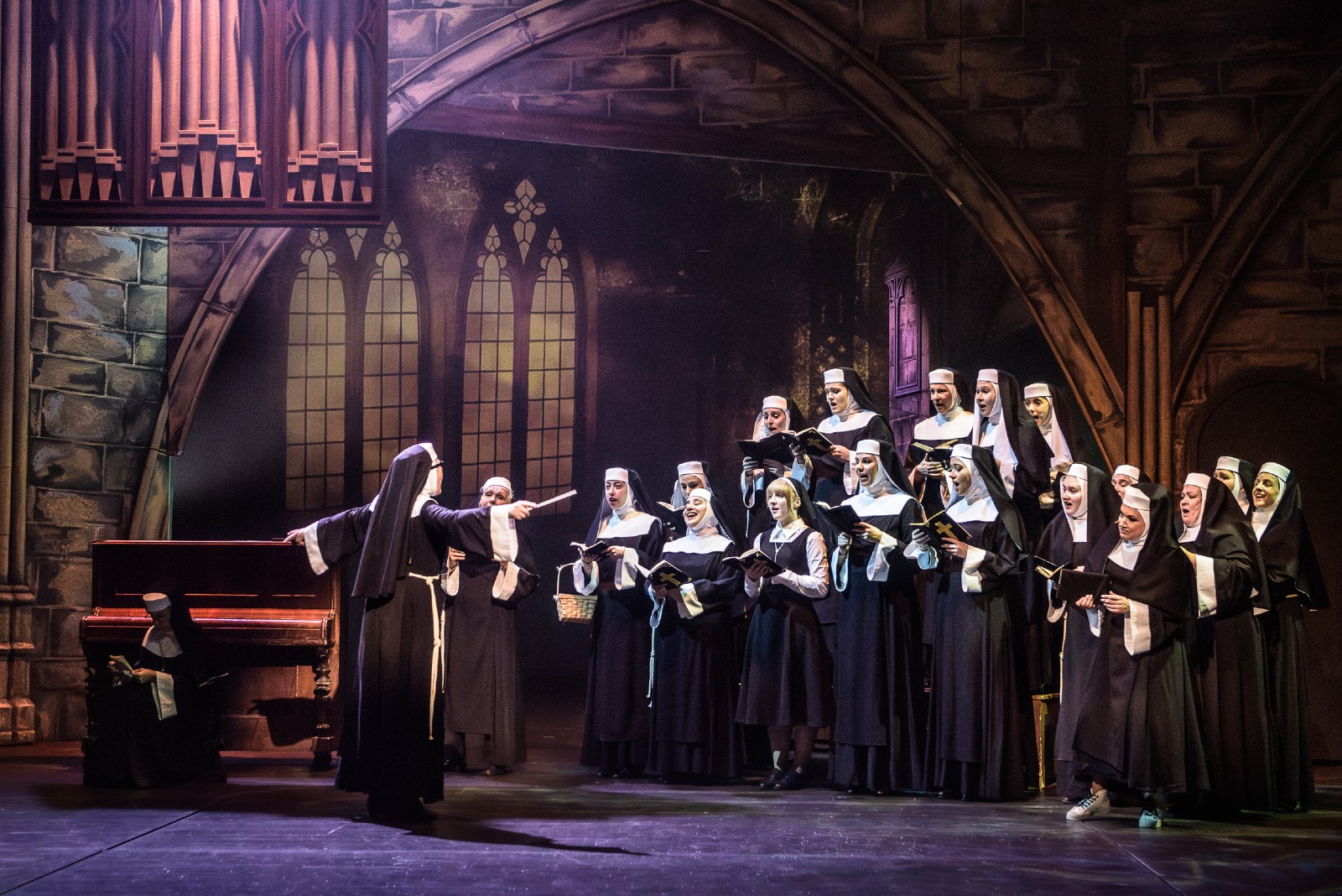 Když se zpěvačka nočního klubu Deloris van Cartier stane nechtěnou svědkyní vraždy, ukryje ji policie před gangstery na nejméně pravděpodobné místo – do kláštera! Klidnému životu řádových sester, vedených poněkud upjatou matkou představenou, se ale znuděná Deloris rozhodně nehodlá přizpůsobit a svojí nezkrotnou povahou obrací zažité pořádky vzhůru nohama. Nový život vdechne také klášternímu sboru, který promění v populární hudební senzaci, čímž ovšem přiláká i nechtěnou pozornost gangsterů. Muzikál s hudbou osminásobného držitele Oscara a hitmakera filmového studia Disney (Kráska a zvíře, Aladin, Na vlásku ad.) nabízí nejen energická hudební čísla, ale také zábavný i dojemný příběh o přátelství, odvaze a nalezení sebe sama.
